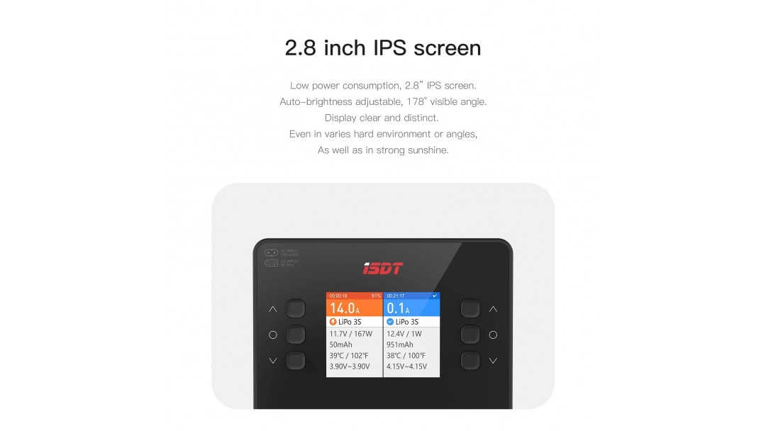 Product Information AC/DC Dual Mode IPS 2.8 inch Screen Abnormal Voltage Alarm: Support Incorrect Cell Count Setting Alarm: Support |