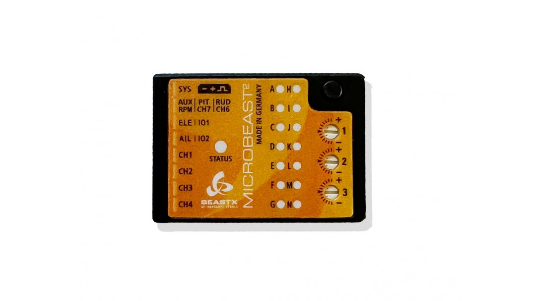 The system can be expanded to include additional useful functions via paid upgrades. A telemetry connection is available in which the MICROBEAST ULTRA acts as an interface between the various sensor systems and remote control standards. With the AttitudeControl we offer additional position stabilization and rescue of the model for flight training and beginner training. Bank switching allows the system to be optimally adapted to the requirements of the pilot via various parameter sets that can be called up during flight.